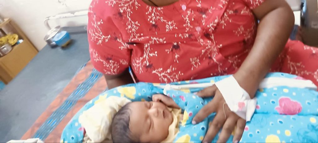 We were contacted by Nidjju in April about a Christian pregnant woman in the mountain who had gone into labor and was hemorrhaging. They had to carry her down the mountain in a basket attached to a pole. They did not have money to pay the hospital ($500 delivery fee + $500 transfusion). She was under intense pressure to relinquish her newborn to a Hindu couple who had offered to pay the hospital expenses in exchange for the baby. We were able to collaborate to raise the $1,000 needed so the mother and baby could be saved and remain together as a family. The parents were so grateful that they allowed us to name the baby. After prayer and discernment, two of our team members (Precious and Barb) independently came up with the exact same first name for this little boy, and that name was Caleb (Joseph). The parents named him Caleb Joseph.